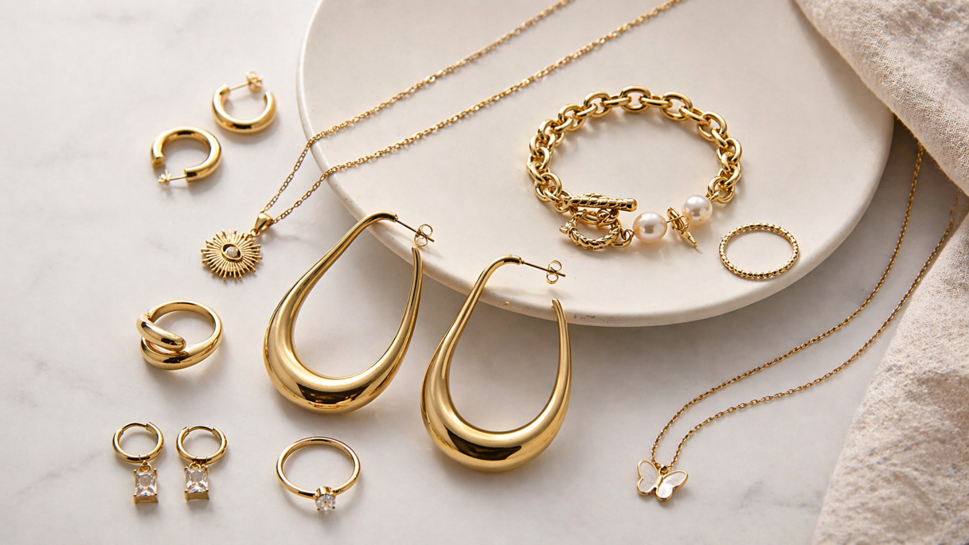 Gold Textured Statement Necklace